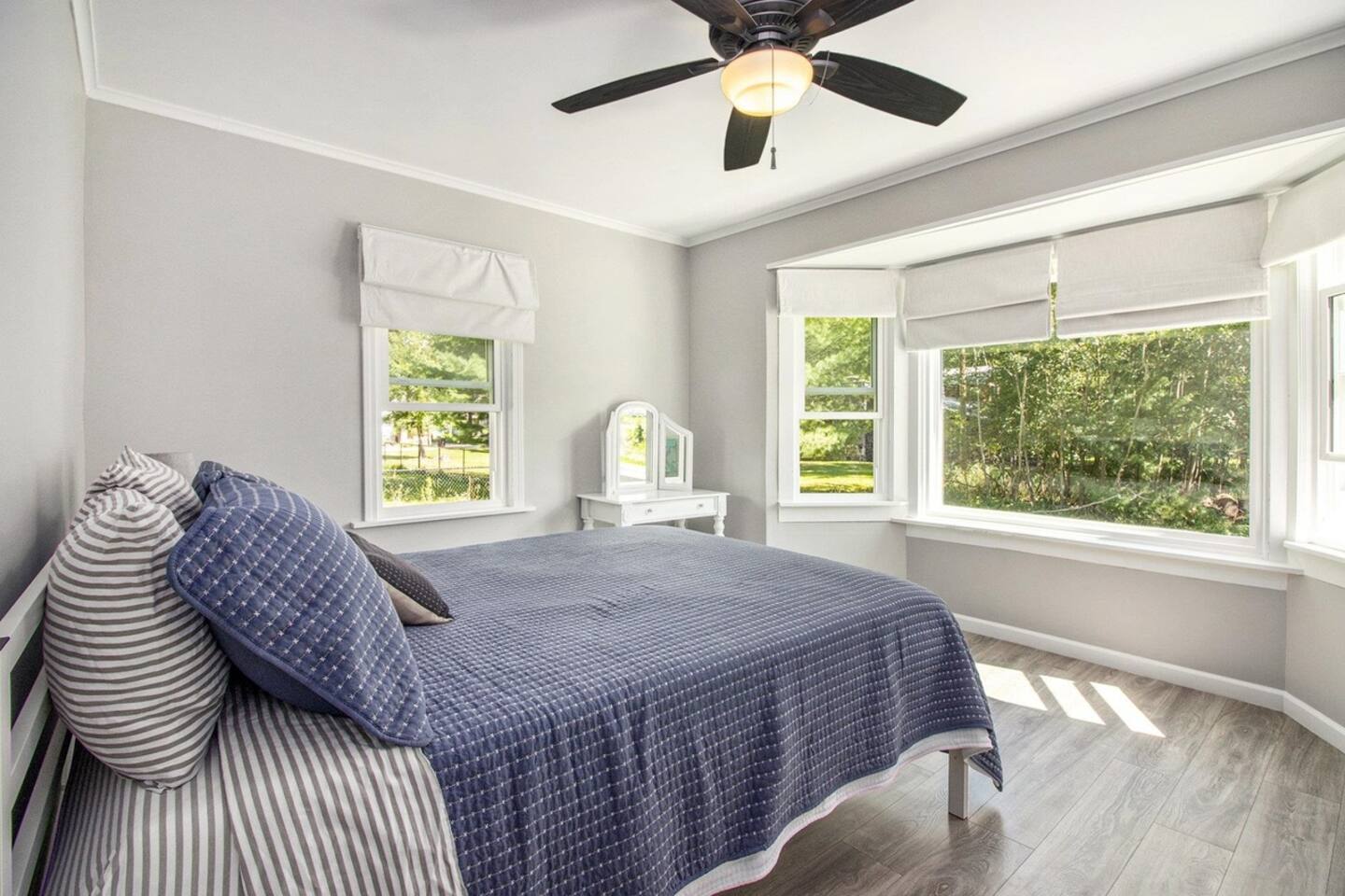 Escape to this charming Higgins Lake retreat, offering plenty of space and amenities for a relaxing getaway! This cozy cottage features a double bunk room (4 twin beds), a queen bedroom, and a king bedroom on the second floor, making it perfect for families and groups. The full bathroom boasts an extra-deep tub, ideal for unwinding after a day of outdoor adventures. The inviting living room includes a warm electric fireplace, a large sectional sofa, and two additional seating areas—perfect for game nights, puzzles, or cozying up with a movie. The fully stocked kitchen has everything you need, including a dishwasher for easy cleanup. An attached garage expands the fun with a heated game space, featuring ladder toss and other games, plus a washer and dryer for added convenience—making this home a perfect year-round retreat! Step outside and experience even more! Take in beautiful Higgins Lake views while enjoying a friendly game of horseshoes or gathering around the firepit for a cozy bonfire under the stars. Whether you're here for boating, fishing, swimming, or snowmobiling, this cottage is the ideal home base for your Northern Michigan adventure.